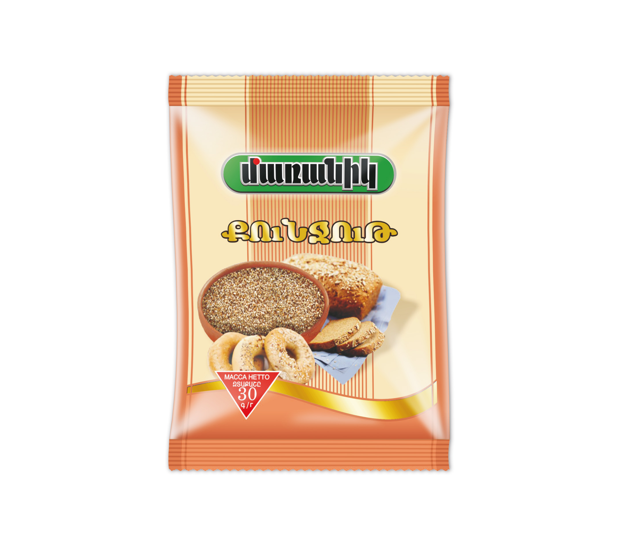 Քունջութ Ծագման երկիրը: Հարավային Աֆրիկա եւ Ասիա Հասանելի քաշ: 30գ Ապրանքի նկարագրությունը Քունջութը ունի բոված արեւածաղկի սերմերի համ: Օգտագործվում է հիմնականում յուղի եւ հացաբուլկեղենի արտադրության մեջ:Այն ավելի մեծ քանակությամբ կալցիում է պարունակում քան պանրի շատ տեսակներ: