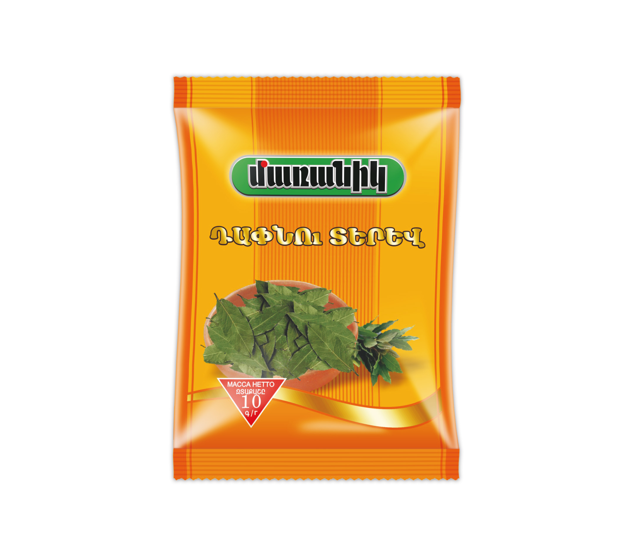 Դափնու տերեւ Ծագման երկիրը: Միջերկրածովյան երկրներ Հասանելի քաշ: 10գ Ապրանքի նկարագրությունը Դափնու տերևները պարունակում են մեծ քանակությամբ եթերայուղեր, որոնց շնորհիվ այն ունի յուրահատուկ բույր: Այն անփոխարինելի է մսամթերքի,ձկնեղենի շոգեխաշման ժամանակ:Օգտագործվում է նաև թթուների, մարինադների պատրաստման դեպքում: