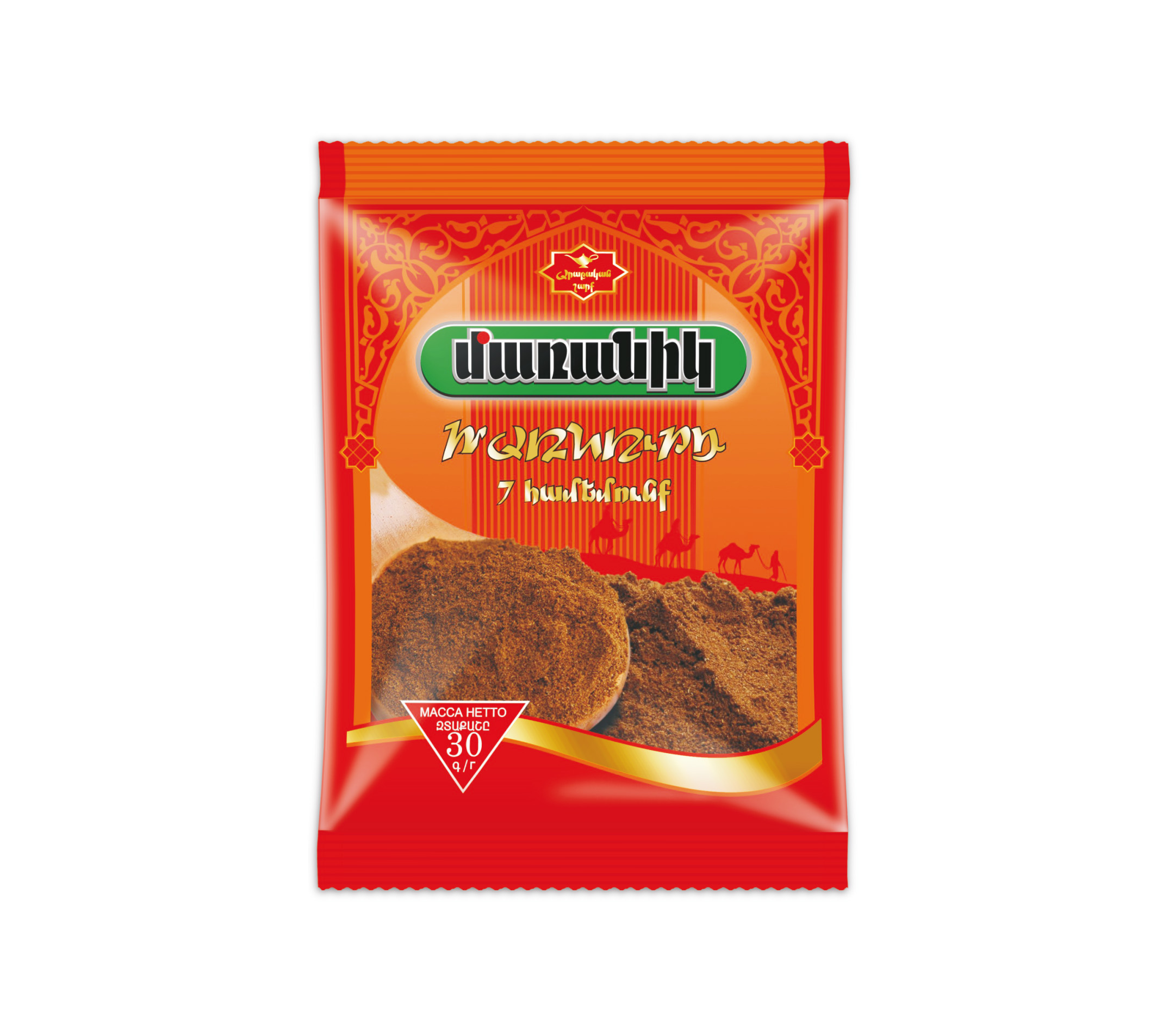 «Մառանիկ» ընկերությունը ձեզ է ներկայացնում հետեւյալ 7 համեմունքների՝ սեւ պղպեղի, բահարի, մշկընկույզի եւ մեխակի, քիմիոնի, համեմի սերմի եւ դարչինի հատուկ համադրություն, որը կարող է օգտագործվել բազմազան ճաշատեսակներում՝ դարձնելով դրանք ախորժելի եւ առավել համեղ:Այն հատկապես գերադասելի է օգտագործել մսային, բանջարեղենային ճաշատեսակների եւ աղցանների պատրաստման ժամանակ: