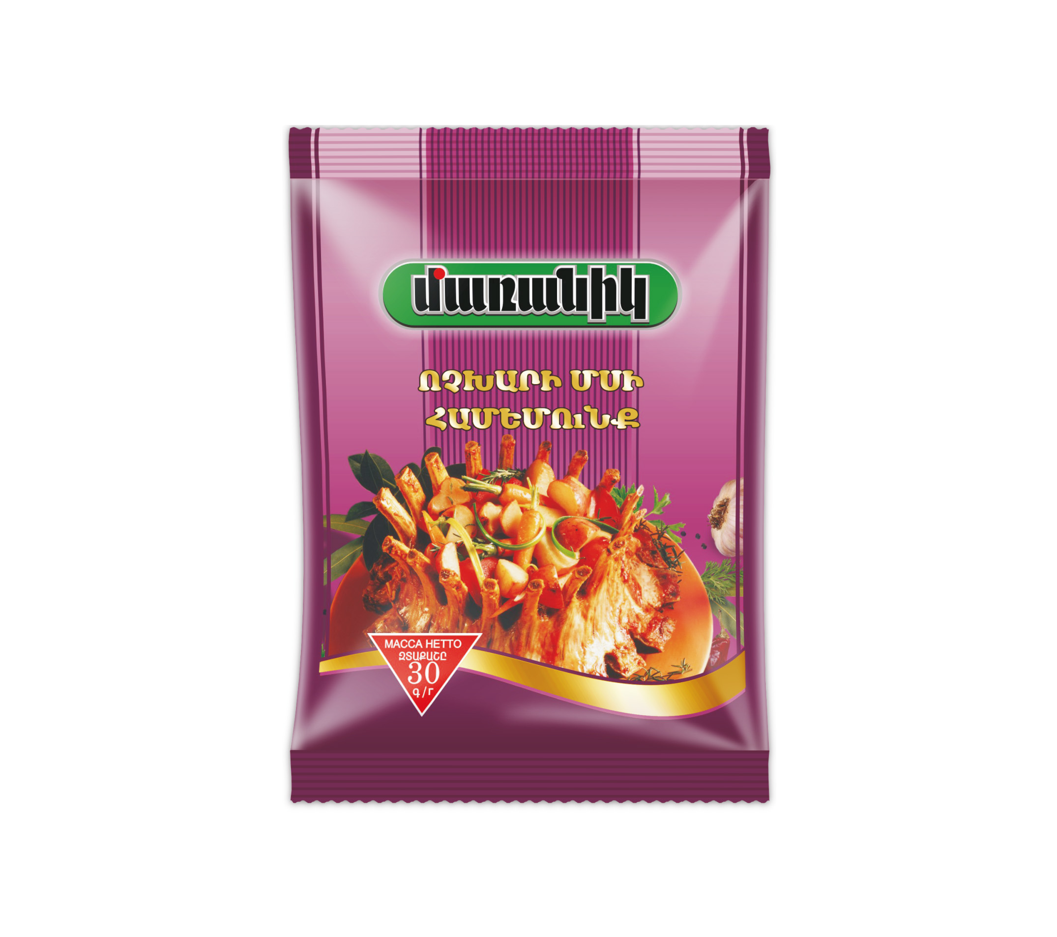 Ոչխարի մսի համեմունք Հասանելի քաշ: 30գ Ապրանքի նկարագրությունը Ոչխարի մսի համար համեմունք՝ նպատակային համեմունքների հատուկ մշակման խառնուրդ: