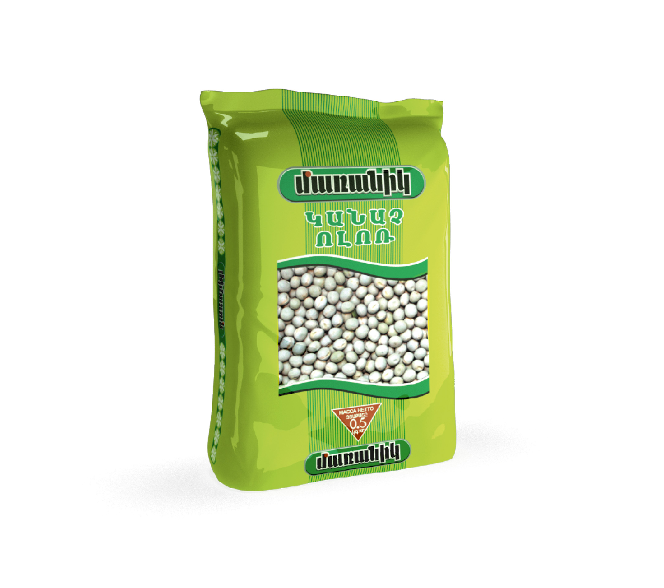 Կանաչ ոլոռ Ծագման երկիրը: Չինաստան Հասանելի քաշ: 0.5կգ Ապրանքի նկարագրությունը Ամբողջական հատիկներով կանաչ ոլոռը նախատեսված է ապուրների եւ աղցաների համար: