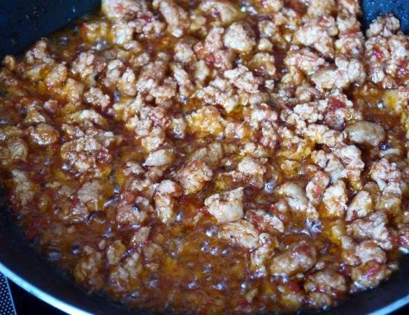 5. Եփել 5-7 րոպե, ապա ավելացնել կետչուպը, համեմունքը եւ աղը: Եփել 5 րոպե: