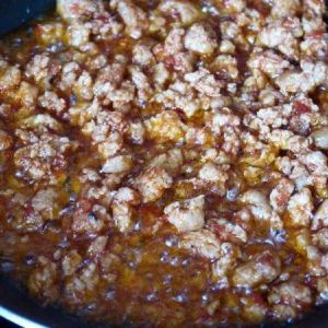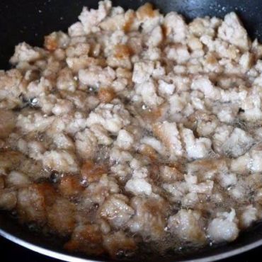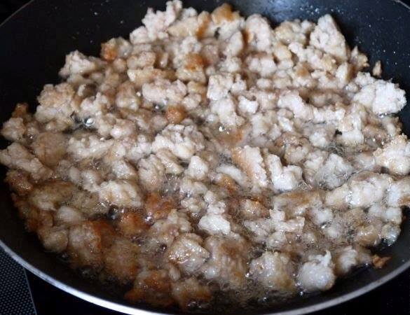 3. Միջուկը պատրաստելու համար հավի աղացած միսը 15 րոպե տապակել բուսական յուղի մեջ: