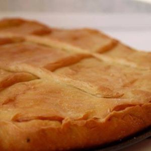 2. Խմորը բաժանել է երկու մասի: Առաջինը մասը կարկանդակի տակը գցելու համար է, իսկ երկրորդը՝ ծածկելու: