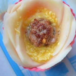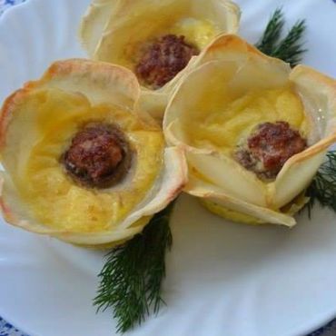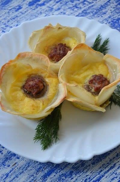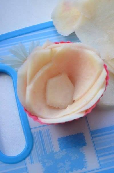 4. Կեքսի ֆորմաների մեջ ծաղկի ձեւով դասավորել կարտոֆիլը: