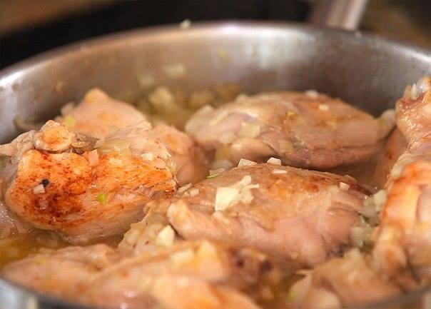 2. 10 րոպե տապակել ձիթապտղի յուղի եւ կարագի խառնուրդի մեջ, անմիջապես ավելացնել սխտոր.
