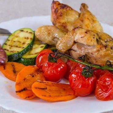 Կարելի է մատուցել տապակած չերրի լոլիկի եւ գազարի հետ: