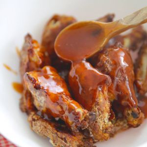 9. Խառնել եւ երբ թեւիկները պատրաստ լինեն տաք սոուսը լցնել վրան: