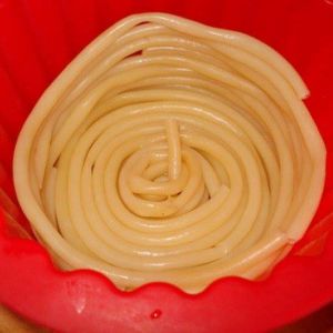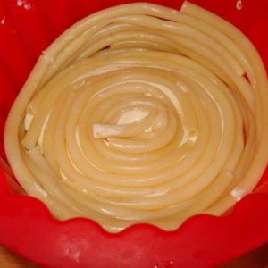 1. Մակարոնը եփել աղ արած ջրում, հանել ջրից եւ չորացնել սրբիչի վրա: