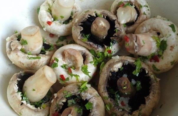3. Այս խառնուրդի մեջ թաթախել նախօրոք լվացած եւ չորացրած սնկերը, թողնել 30 րոպե: